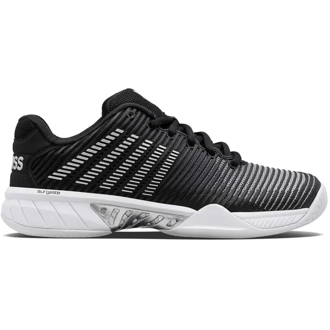 De K-Swiss Hypercourt Express 2 Dames is een van de meest geliefde tennisschoenen van K-Swiss en speciaal ontwikkeld voor speelsters die snelheid en comfort willen combineren. Het lichtgewicht en ademende bovenwerk zorgt voor een koel en fris gevoel, zelfs tijdens lange en intensieve wedstrijden. Dankzij de vernieuwde demping ervaar je extra comfort bij iedere stap, terwijl de brede pasvorm en soepele constructie veel bewegingsvrijheid geven. De duurzame buitenzool biedt uitstekende grip en stabiliteit op verschillende ondergronden, waardoor je vol vertrouwen kunt bewegen. Of je nu traint of wedstrijden speelt, met de Hypercourt Express 2 sta je altijd sterk op de baan.